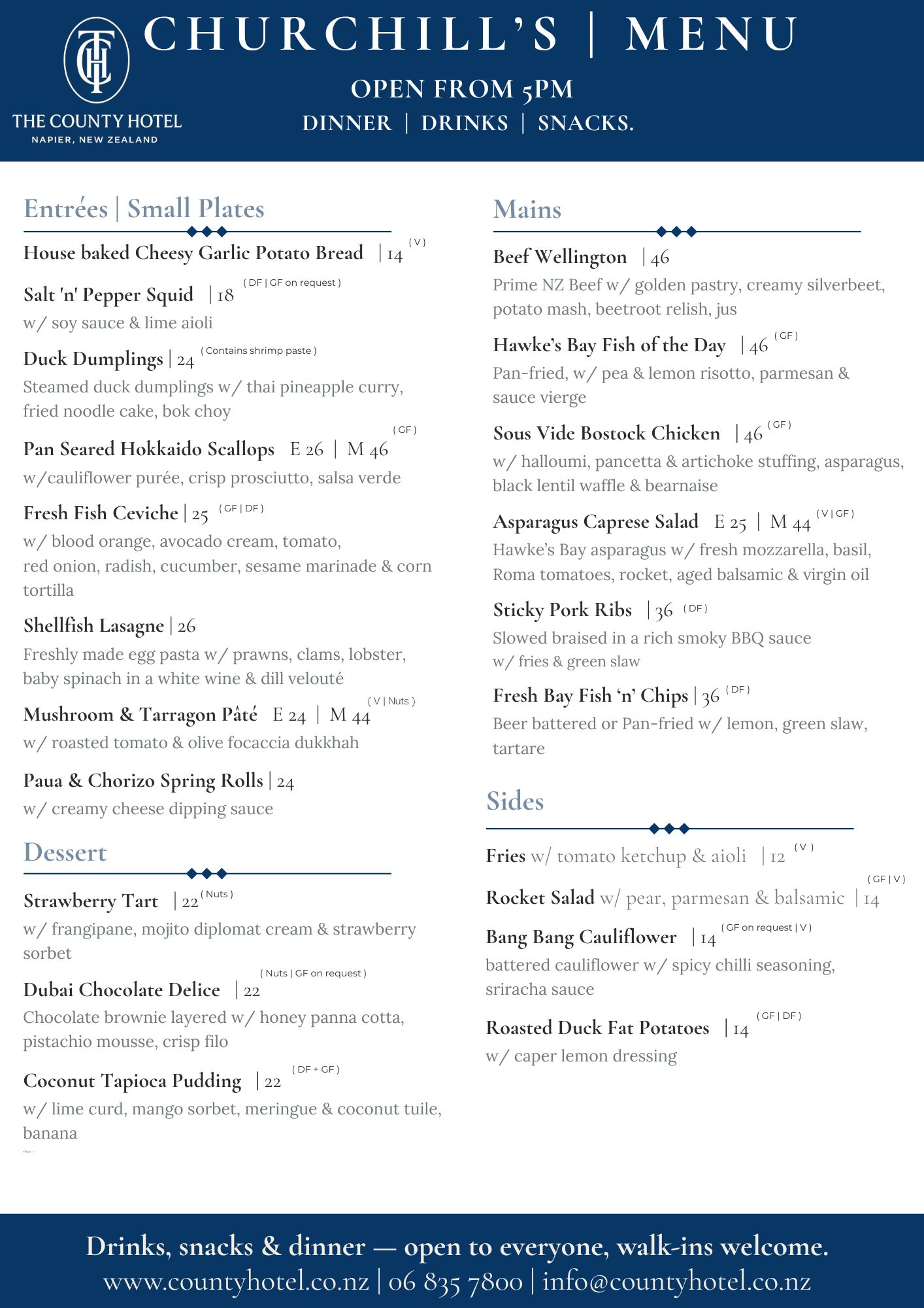 - Not available for private group dinners, Christmas Parties, Luxury Escape Package holders or accommodation package holders or events.